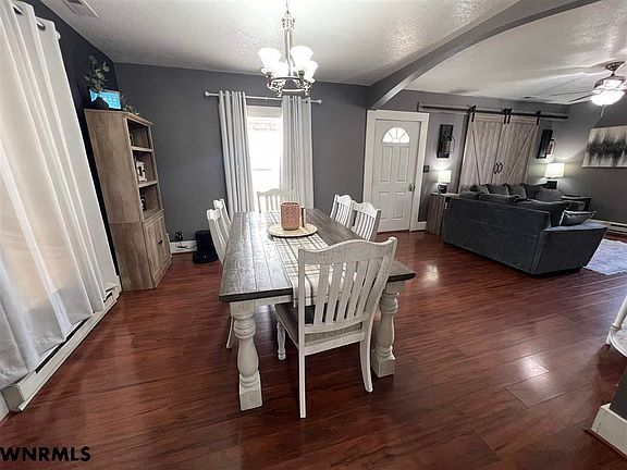 Adorable move in ready home. Perfect for a first time home Buyer or if you are looking to downsize. Great area in Gering, close to downtown and schools. Inviting curb appeal with a relaxing front porch and big windows letting in natural light. As you walk inside you will see homeowner pride through out, spacious living room with dining room, main floor bedroom, the kitchen has all you need with space and comfort. Upstairs has a large bedroom with a walk in closet, the AC unit stays but also has forced AC. Laundry room has plenty of storage and access to the backyard. One car detached garage with extra storage space, fully fenced in backyard with cement patio to enjoy the upcoming summer. Many new items in the home including, HVAC, interiors doors, barn door, carpet, paint, and so much more. Take a look today!