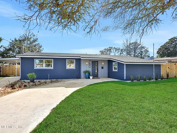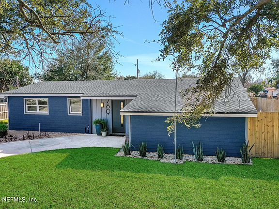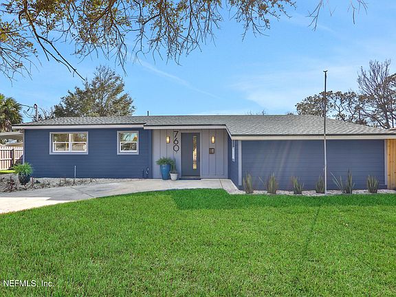 Imagine living in a like new home with high end finishes, maintenance free and only 9 blocks to the beach...is that something you'd like? Then you've found it here! This beautiful renovation was stripped down to the 4 exterior concrete walls. A brand new layout with an open living floor plan that's great for entertaining and family. In the kitchen, 42'' upper cabinets, all with soft close hinges and slides. Quartz countertops and a large single basin sink. Gas range/oven and a tankless gas hot water heater. Just off the kitchen is a large room for laundry, water softener and storage or pantry needs. Luxury vinyl plank runs throughout the living areas and into each of the bedrooms. Solid, single panel doors throughout the home. All light fixtures are high end by Elk lighting. The primary bedroom has 2 closets, one of which is a large walk-in closet. The primary bath has a beautiful double vanity and gorgeous shower. The large walk in shower has a very relaxing feel and unique lighting features. The 2nd bath/guest bath features beautiful tile and a deep tub for soaking. All fixtures through the home are high end delta fixtures. Step out onto the back porch through the sliding glass doors and enjoy the large, quiet backyard, which has plenty of room for a pool (Please see renderings). A brand new fence surrounds the back yard and gives great privacy. There is one covered parking spot. The exterior of the home is new cementious lap siding and roof was installed July 2022 and spray foam insulation throughout. PEX Plumbing system. All new windows and doors. No stone was left unturned in this beautiful renovation. The home is staged by Curations Furniture and Design and all furniture is available for sale. Come see this home today and make your dream come true!