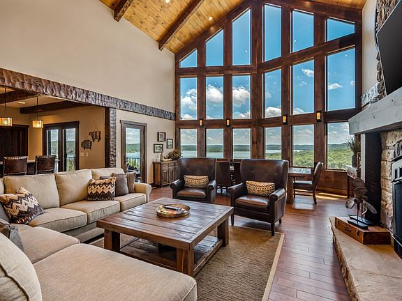 Absolute perfection! Spectacular panoramic lake views for miles! Boat slips available just below the house! The BEST location just 5 minutes from Kimberling City! This spectacular Craftsman Lodge style lake home is unlike any you've ever seen. Masterful design and construction quality with every bell and whistle imaginable. A master suite to die for, two additional guest suites, plus a bunk room with four queen-size bunks. Chef's kitchen with large walk-in pantry. Multiple decks for entertaining, grilling, and soaking in the hot tub while taking in the great views! Mister system on the decks to keep cool on hot summer days. Awesome lower-level family room with wet bar. High tech smart-home system. This lake house is made for making memories and having fun!