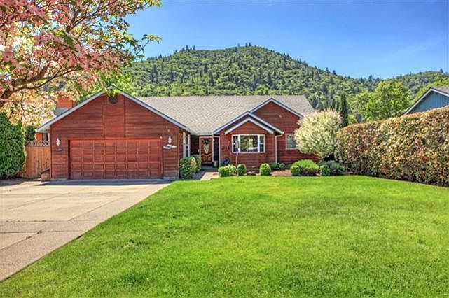 Fabulous Rogue River front home complete with boat house & automatic boat launch. All main floor living with great river & mountain views, this wonderfully updated home features vaulted ceilings and gas fireplace with Granite hearth in the living room, formal dining and spacious kitchen with Granite counters, Jennair downdraft range & breakfast nook. The master bedroom is complete with bayed window overlooking the river and features a double vanity with vessel sinks, Granite steam shower with pebble floor, walk-in closet and access to a private deck. Hardwood & tile floors, French doors, in-home office with built-in desk, built-in sound system, designer colors and multi-level decks for great outdoor living and entertaining. Oversized 2-car garage and mature landscaping with inground sprinklers. Located at an excellent fishing hole with grandfathered-in boat launch system and conveniently located to all conveniences & I-5 access, this home is a must tour and your dream come true!