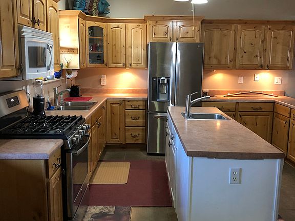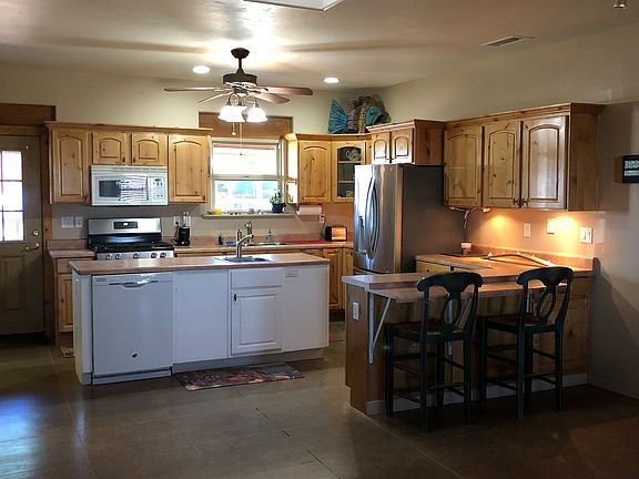 Santa Fe home with stained concrete floors, knotty pine cabinets, built-in desk, gas fireplace/ stove. 3 bed, 2bath. 2x6 exterior walls, 9ft ceiling, 3/4'' plywood roof. Outside repainted 9/2018. 2 covered porches. New Trane heat pump 2/2019. Work shop and fireplace in 24x32 two story post and beam barn. Apartment remodeled 2015 with attached 2 car garage. Newly added 24x40 RV hanger. 30&50 amp hookups. 2.5 acres totally fenced with 5' horse fencing. Two separate fenced in pastures. Green Gulch trail head 1 mile away Driveway has electric gate. Underground electrical, private well 12 gpm. 500gl owned propane tank, security system, fruit trees.
