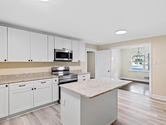 Beautifully updated Brick Ranch on large lot close to downtown, 40 and 440. Large kitchen fully remodeled with large island, new cabinets and beautiful hard surface countertops. All stainless steel kitchen appliances included! Original hardwood floors throughout the bedrooms, living and dining room. LVP in kitchen and master bedroom. 4th bedroom could be used as a family room. Decorative fp in living room.
