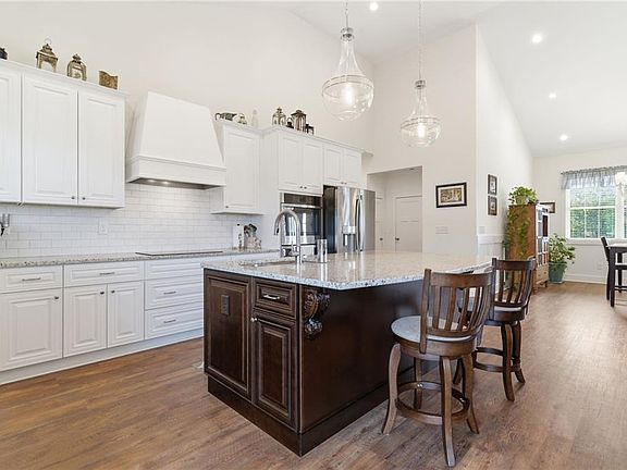 - Features: Breakfast Bar, Cabinets White, Kitchen Island, Pantry, Solid Surface Counters, Stone Counters, View to Family Room
