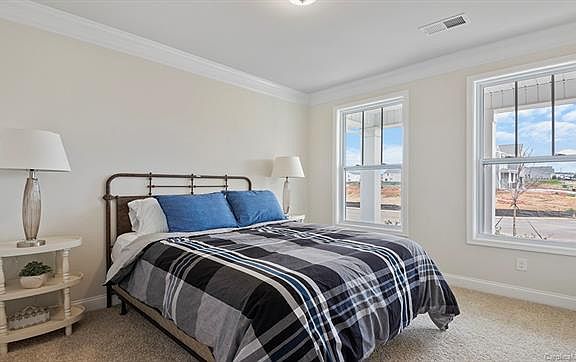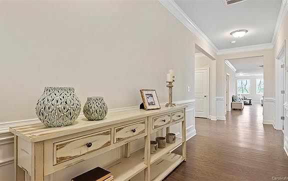 Exceptional Dover floor plan on Lot 24 features a desirable configuration w/ 3 bedrooms plus a bonus room w/ French Doors perfect for an office space. Upon entering the home the interior boasts of 9' ceilings w/ 2 piece crown molding throughout & wainscotting in the entrance hall. Mohawk Revwood flooring expands throughout the living room where you'll find a gas fireplace w/ vented logs & ceiling fan w/ oil rubbed bronze fixtures. The Revwood extends to the dining area marked by the white wainscotting, & into the kitchen area which includes an island w/ granite counters & oil rubbed bronze pendant lighting, Aristokraft cabinetry, & SS gas range, dishwasher, & microwave. Bedrooms are delivered w/ carpet while bathrooms are tiled. The back porch is screened w/ outdoor ceiling fan. Smart Home package includes Skybell camera doorbell & electronic Kwikset door lock. Clubhouse onsite includes a heated swimming pool, billiards, event room, library, business center & fitness room.