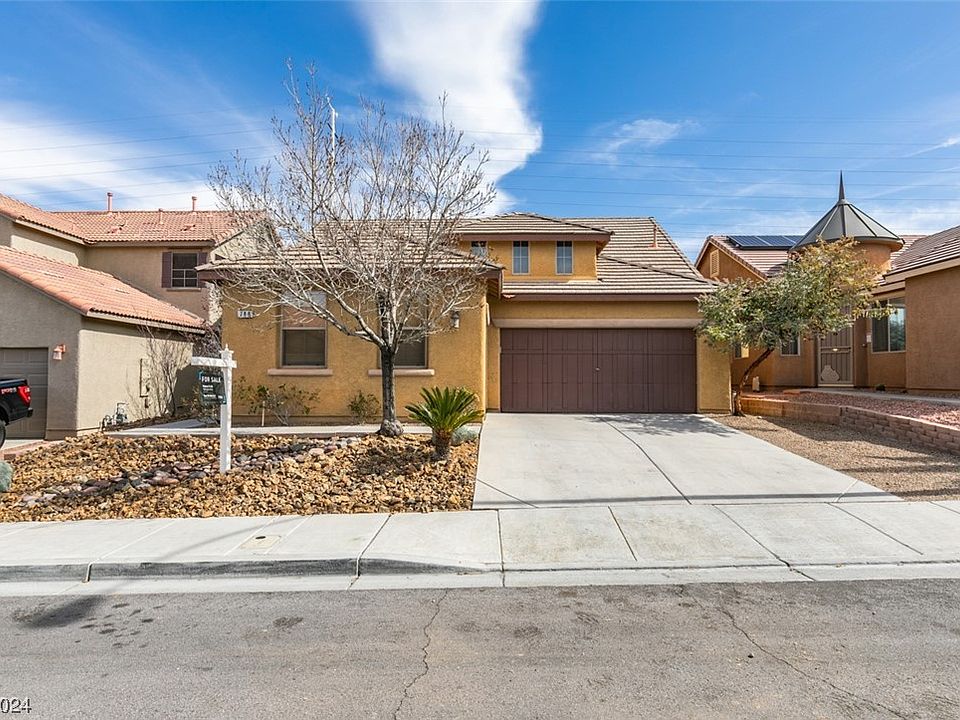 Don't miss this amazing Henderson home! Outside, you'll love the curb appeal, 3 car garage, low maintenance yard & architectural charm (rare in this town!). Inside, you'll appreciate the neutral paint & tile floors as you enter the formal living/dining rooms. Passing the stairs, you'll come to the spacious kitchen & family room with vaulted ceilings. The kitchen boasts appliances, solid counters, plenty of light & room! The primary bedroom is located in it's own section of the bottom floor & you'll be stunned by the size (25'x15'), dual sink bathroom w/ separate tub & shower along with a walk-in closet. The guest bedroom downstairs is also large & across the hall from the bathroom. Upstairs are two bedrooms with full bath in-between. The backyard has fresh green grass, ready for an Easter egg hunt! Over the back wall is a walking path and no neighbors so you can enjoy privacy while you relax under the covered patio. Zoned for Coronado HS, too! Schedule a showing today!