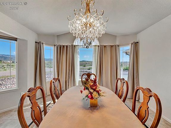 Views, Views, and More Views in every direction! This beautifully updated home blends luxury, style, function & an awesome floor plan. As you step into the entry you are welcomed into the formal dining room which is filled with natural light from elegant alcove windows. Continue past the staircase to the Great Room, you’ll fall in love with the chef’s dream kitchen featuring high-end Whirlpool appliances in a sleek Champagne finish, pristine quartz countertops, custom backsplash, & a large, unique island with tons of storage and casual dining space. The island flows seamlessly into the living room with soaring vaulted ceilings, a stunning gas fireplace, & walls of windows that capture panoramic views of the entire River Valley, The Wet Mountain Range, and the tips of the Sangre de Cristo Mountains. Offering 2,030 sq. ft. on the main level & 3,958 total sq. ft., the spacious master suite features vaulted ceilings, breathtaking mountain views, a 12'7" x 8'9" walk-in closet, & a luxurious 5-piece bath with a 6’ soaking tub. Two additional bedrooms include a second master that shares access to a second full bath, along with a convenient main floor laundry room. The partially finished basement offers a cozy 16'7" x 29'5" family room, with plumbing already in place for an additional bathroom & plenty of space to add a mini kitchen, 3–4 more bedrooms, & storage. This home includes all appliances, custom blinds & drapes, & many furnishings, including the office and family room furniture. Outside, enjoy a covered back patio perfect for relaxation, overlooking stunning sunsets, Our Colorado Mountains & the Cañon City skyline. The seller has meticulously maintained the low-maintenance xeriscaping that makes yard work easy. Home upgrades include the newer Lennox 96% high-efficiency furnace & central air with dehumidifier (installed in 2020), custom solar window film for privacy and energy efficiency, and a brand-new roof, skylight, and freshly painted exterior in May 2025!