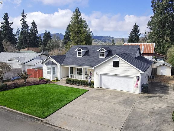 Charming westside single level home on a dead-end street in Roseburg! Features include beautiful hardwood floors, bay window, custom cabinets, solid surface counter tops, tile, coved ceiling in the living room and primary suite w/walk-in closet, walk-in shower, soaking tub and French doors leading to a small private deck. This has a split floorplan and is a very quality build with lots of detailed woodwork. There is an extra room currently being used as a den but could be an office or a 4th bedroom easily. Enjoy the fenced backyard with covered patio and small outbuilding for storage or??? There is lots of parking including for a RV on this level property. Don't miss this awesome property that is conveniently located to everything. Call for your private tour today!