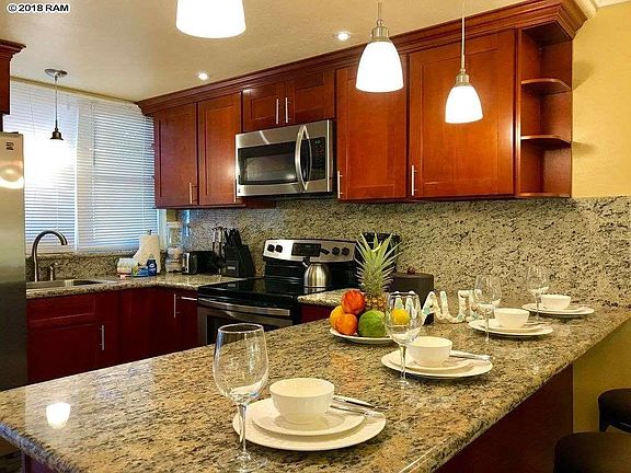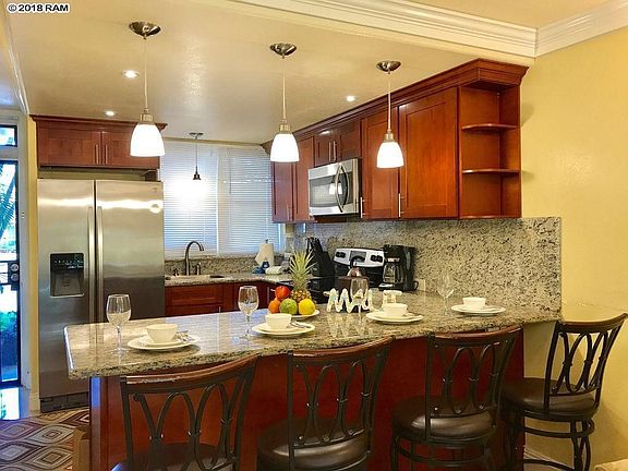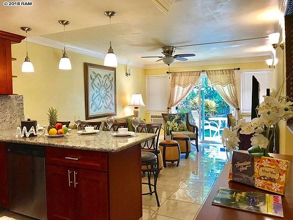 Top of the line! 2 bedroom 1 bath, located in the heart of Lahaina Town.Wonderful grounds, kept with lushes palms and very private pool and BBQ area. Close to shops, Famous Front Street, food stores and many Harbor/Ocean activities, close to beaches for swimming and snorkeling. Completely remodeled in 2016, this home boasts tile floors throughout , stainless steel appliances, crown molding, granite countertops and much more. This is a must see Property.