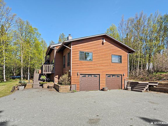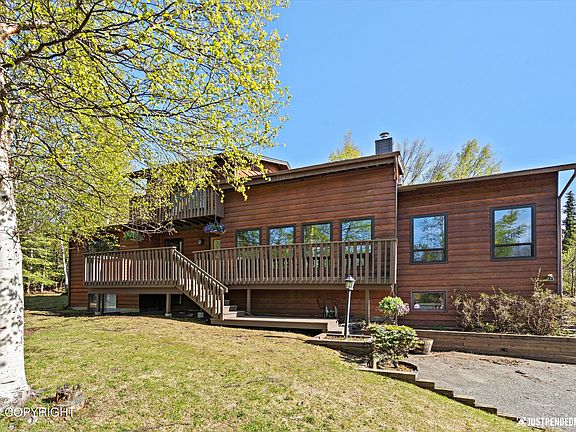 Large cedar-sided home off Hillside Dr. with 4 beds, 3 full baths, 3 living areas, and a bonus room/office. On a .94 acre, corner lot, this home offers privacy, garden beds, a tree house, storage shed, and separate RV parking. Custom kitchen and master bath remodeled with luxury appliances and fixtures. Three decks and partial views. New septic (2021), roof (2012), and main-floor windows (2013).Straight-line distance to: Upper Huffman Trailhead (1 mile) Upper O'Malley Trailhead (1 mile) Glen Alps Trailhead (2 miles) Prospect Heights Trailhead (2 miles) Hilltop Ski Area (2 miles) Alaska Zoo (2 miles) Anchorage Golf Course (2.8 miles) Upper Rabbit Creek Trailhead (3 miles)