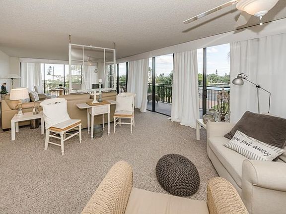 Beautifully updated and furnished in the coastal decor. Floor to ceiling sliding glass doors in the living room and bedroom open to the continuous balcony where you will delight in view of the waterway and twinkling city lights. Around the corner of the balcony, watch the sunset over the Gulf. Kitchen opens to the living area with a large breakfast bar. You'll find a comfortably spacious bedroom with walk-in closet and private bath; utility room with full size washer dryer and guest half bath located off the entry hall; as well as under cover parking space and extra storage room in the building. Mansions by the Sea, a gated community directly on the Gulf where you can bask in the sun and listen to the waves breaking on the white sand of Sunset Beach. Located at the southern tip of the Island, this tucked away retreat abounds in amenities unmatched in the area. Enjoy the sparkling Gulf front heated pool with huge sunning deck, tennis courts, updated party room with flat screen TV and kitchen, large game room, full fitness center looking out to the Gulf, library, two saunas, boat & RV parking, picnic pavilion, 6/10 mile boardwalk for fitness walking. Easy driving distance to shopping, restaurants, sporting venues including MLB baseball, NFL football, NHL Hockey, cultural events and major airports. Perfect as a rental, your full time home, or your own personal resort-style getaway vacation home.