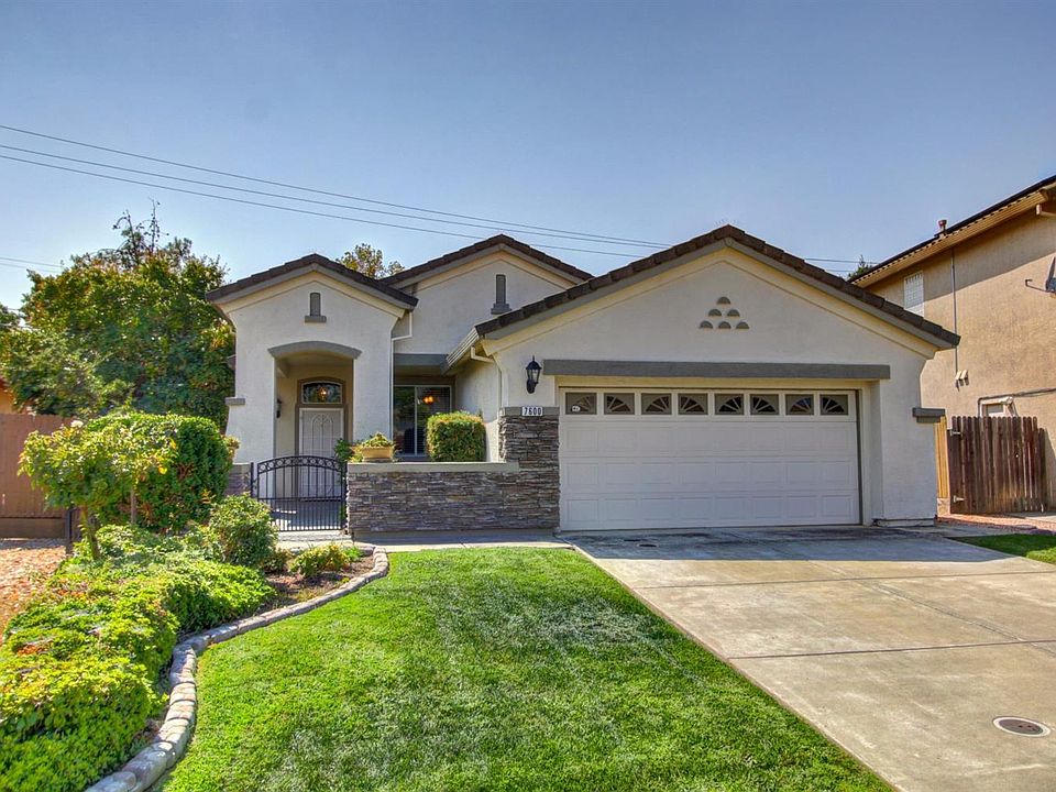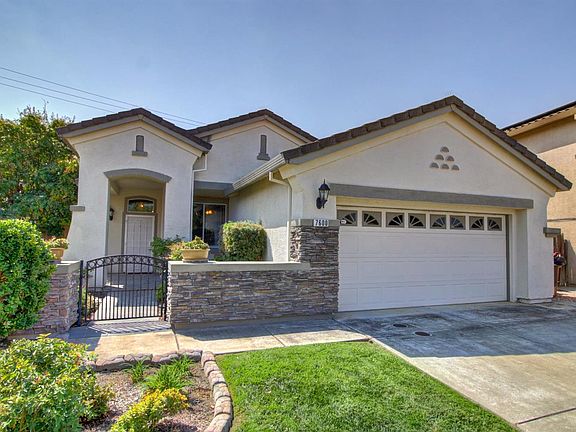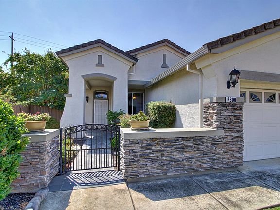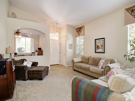 This Elliott built former model home is loaded with charm and upgrades to include a gated Flagstone courtyard, plantation shutters throughout, crown moulding, cabinets in garage, lots of storage and counter space i kitchen and baths and beautifully landscaped back yard with covered patio and fountain. HVAC is only 8 years old. There are 2 sinks in the hall bath and mirrored closet doors in the bedrooms. Easy maintenance single story, stucco with tile roof. Close to shopping, schools and parks.