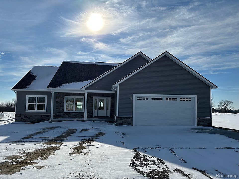 Imlay City New Construction! Check out this beautiful 1,800 sq ft, 3 bedroom, 2 bath split ranch on almost 2 acres just minutes from Imlay City. Open concept plan is spacious and features tray ceiling in great room, large island in kitchen, tray ceiling in primary bedroom, minimum 10' ceiling heights throughout, central A/C, 2 car attached garage and large basement. This one is almost finished. Schedule your private showing today!