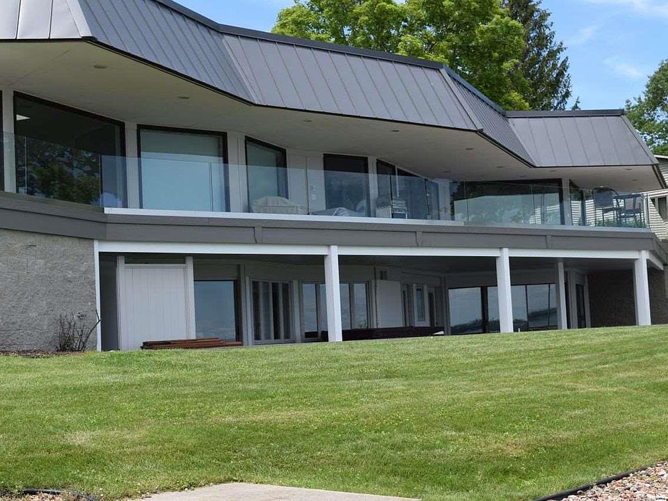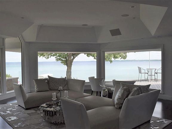 Perched on a magnificent stretch of private, sandy, beach. This spectacular home is one of a kind! Sandy shoreline and sandy beach make it among only 20% of the waterfront homes in the area. This home is an architectural masterpiece that has been completely remastered in 2011 by Interior Design firm The Inman Company. The main floor master suite anchors this home to the South and the magnificent, sweeping, main floor living space anchors this home to the North. The entire waterside of this home is all glass to take full advantage of the breathtaking views of East Grand Traverse Bay. The lower level is complete with 3 bedrooms and 3 bathrooms which all walkout right onto the sugar sand beach. This home comes complete with radiant floor heat, surround sound throughout, Subzero and Viking appliances, Zebra wood custom cabinets, blumotion soft close servo drives, extensive composite board decking which span the entire length of the house, 108 linear feet of 1/2 inch thick glass railing, two wood burning fireplaces with gas inserts, built in entertainment unit complete with hidden television and a motorized tambour door, three car attached garage with glass doors and a drive thru feature, and too many features to name! This home truly is one of a kind and does not come around often!
