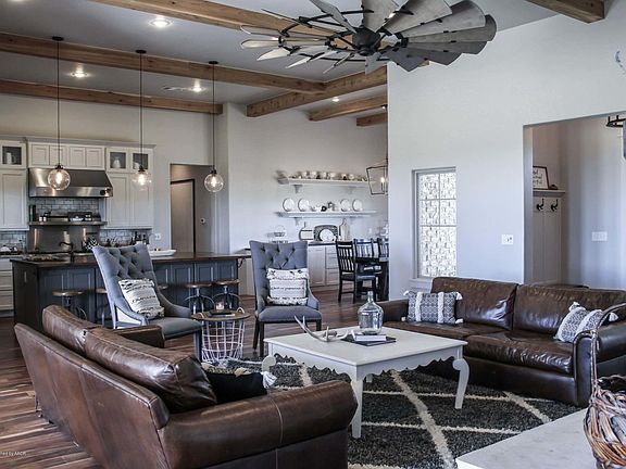 Price adjusted $20,000. Vacation every day. Luxe Farmhouse w/acreage. Stunning view of the Canyon. Unmatched privacy. Texas sunsets. Living, Kitchen, Dining open with access to large back patio for entertaining. Eat-in island for added seating. 2 Dishwashers. Viking range. Austin stone fireplaces in living and back patio. Gas fireplace in Dining. Large Basement (sq ft not included in total sq ft, brings ppsf down). 2nd living/media. Office/mudroom. Unfinished room. Tall Ceilings. Granite/ Quartz countertops. Isolated Master Bed/Bath with his/her sinks, closets, Clawfoot bath, shower, closet attached to laundry. Hall bath next to outdoor access. Outdoor kitchen area. Acacia floors. Access to fishing, golf, hiking, atv and horse trails, and canoeing. Owner is licensed in Texas