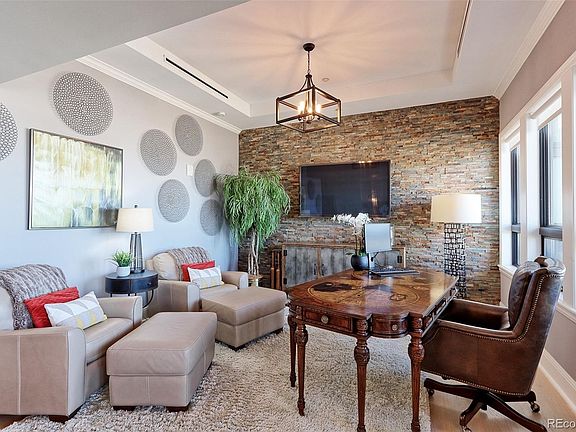 Welcome to Denvers premier luxury living experience, The Landmark Towers. Conveniently located in the heart of the DTC, The Landmark features 24-hour concierge, guest suite, wine cellar, swimming pools, fitness facility, business center, library, club and theater rooms. This stunning 8th floor condo is the highly desirable 2 bedroom plus a study and 3 bath floorplan, with many upgrades. The rare northwest facing unit offers the best of Landmark living with stunning views of the mountains and the city. Modern and textured, the spacious open layout, features a large great room with an adjacent study/sitting room. The space is spectacularly light filled with 12-foot recessed ceilings, wide-plank wood floors with organic stone wall and elegant marble surround fireplace. A fabulous kitchen with JennAir stainless steel appliances, quartz countertops, pantry and eating bar. This incredible condo has two entrances: the front entry door and an additional butlers pantry entrance with ample extra storage that can also be used as an additional office space. Two large master bedrooms with five piece en suite bathrooms and walk-in closets. A third bathroom also makes a great powder room. Laundry room with washer/dryer and built in cabinetry. Step into the outdoors, onto a private covered balcony with amazing city to mountain views. This home comes with 2 reserved parking garage spaces, 2 storage cages and a wine locker in the buildings climate-controlled wine cellar. Located in the highly desirable Cherry Creek High School district this unit is luxury living at its finest. Plan to see it today!