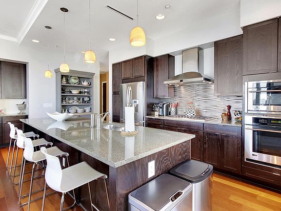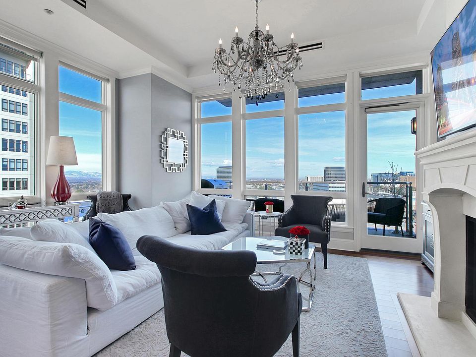 This beautiful 2BR/2BA corner unit has unparalleled views of mountains by day and city lights by night. Featuring a fireplace, hardwood floors, granite, travertine and stainless steel appliances, this unit has it all! A large master suite with jetted tub, travertine floors, granite counter, frameless shower, dual vanities and walk-in closet. BR #2 adjoins a 3/4 bath with frameless shower and walk-in closet. For convenience, there is a full-size stack washer and dryer in the unit. This unit is ready to move in immediately! There are 2 garage spaces and a large storage unit. Renter pays for Gas/Electric and Cable.