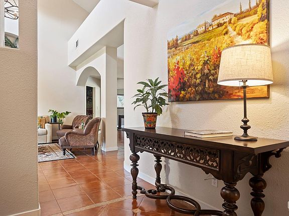 Beautiful Spanish-style home in desirable Willow Creek neighborhood! Recessed entryway & front courtyard/porch area. Enter in & see the gleaming tiled flooring w/ decorative inlay at entry. Great Room w/ vaulted ceiling, chandelier, floor-to-ceiling fireplace & French doors. Lots of windows thru-out make it so light & bright! Double set of French Doors in Dining Room/Kitchen allow you to enjoy the indoor-outdoor lifestyle. Perfect for entertaining! Open Kitchen w/ granite countertops, Breakfast Bar, stainless steel appliances & sink. Walk-in Pantry. The Bedrooms are spacious! The Master Bedroom has a corner fireplace, separate walk-in closets, open to Bathroom w/ double sinks & French doors to the backyard. Master Bathroom has large walk-in shower. Relax in the cool shade of the covered patio. Northern exposure so no direct summer sun! In-ground swimming pool & spa. Large grassy area & mature landscaping. 3-car garage w/ drive-thru bay. Tiled roof. New HVAC! See this one today!