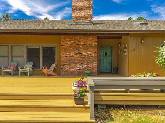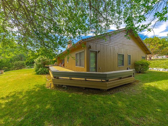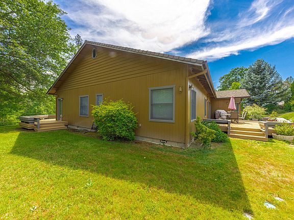 Magnificent well cared for single owner home shows love and pride. Home is open with wood burning stove and pellet stove. Classy bricks to spacious kitchen and breakfast nook area. Large extra room with sink, could be craft room, play room, or ? Nice master bedroom with exit door, double sinks with hot water for the bathroom. Large decks look to pond and mountain views. Outbuildings include barn with covered carport and artist studio 768 sq.ft. that could be used for extra living space. Boat launch to the Rogue River across the street.