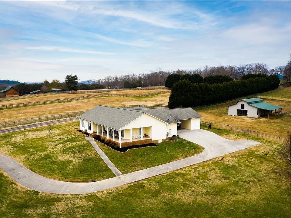 Acreage!! Bring your horses! 7+ acres, 3 bed one level, open floor plan home with a 4th bedroom, tile and hardwood floors, sun room, master on main, walk in closets, jacuzzi tub and mountain views! 2 car carport, fully fenced paddock, 4 stall barn, tack room and wash bay, with electricity and water, efficiency apartment, large enough for a king size bed and dresser, fenced back yard for the dogs. Bright and airy home you must see! Close to Bakers Creek boat launch and horse trails.