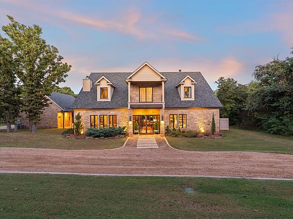 Presented for the first time, this one of a kind estate is nestled on four secluded acres of serene terrain, offering the perfect blend of luxury and tranquility. Custom-built by the current owners in 2014, this property boasts four spacious bedrooms and three and a half bathrooms. The expansive grounds allow one to live in an inviting oasis while still being conveniently located just minutes from downtown Oklahoma City. At the approach, a crushed granite driveway winds gracefully through the trees, enhancing the sense of tranquility that blankets the entire area. From the front door, the old-growth trees are visible beyond the formal dining area and the resort-like pool. The outdoor entertaining area is complemented by a relaxing hot tub and a fully equipped outdoor kitchen—an entertainer’s dream. Thoughtfully designed for both comfort and style, beautiful features and finishes are found in every room. Striking fireplaces are perfect for cozy gatherings. The primary suite includes its own fireplace and a luxurious soaking tub, creating a warm and relaxing retreat. A home gym and a home office offer practicality and luxury. Stunning floating stairs add a modern architectural element, creating an open and airy atmosphere. Unique imported Asian antiques are artfully incorporated as doors and vanities, adding character and elegance throughout the space. A 685 square foot two-bedroom guesthouse provides ideal accommodations for extended visitors. (Not included in listing square footage.) Geothermal energy makes the property sustainable and efficient. This first offering combines modern sophistication with the charm of a truly unique retreat.