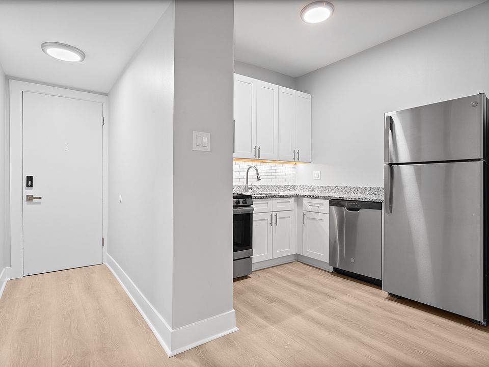 Modern White Kitchen Cabinets with Undercab Lighting Granite Countertops with Deep Undermount Sink Stainless Steel Appliances including Dishwasher In-Unit Laundry Designer Plank Flooring Ceiling Fan with LED Lighting Heat, Cooking Gas & Water Included Pets Welcome (No pet rent!) Heat/Water/Cooking Gas Included Easy CTA Access Nearby Parking Options for Additional Monthly Fee Laundry Center with Mobile Pay Short Distance to Parks & Beaches Convenient Access to Shopping Dining & Entertainment ButterflyMX Intercom System with Key Fob Unit Access 12 Month Lease Heat, water, trash, cooking gas included No smoking