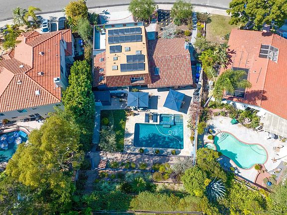 Open House Sunday 12/1 @ 12pm - 3pm - Discover this inviting 4-bedroom home in La Costa situated on almost 1/4 of an acre private lot. With no HOA and no Mello Roos, this property offers plenty of freedom and charm. Highlights include solar panels, serene water features, and bright skylights that enhance the spacious layout. The interior features elegant wood floors and soaring ceilings, leading to a gourmet kitchen perfect for culinary enthusiasts. Step outside to your private oasis, complete with a swimming pool and spa, ideal for relaxation and entertaining. The versatile fourth bedroom, complete with a full bathroom and kitchenette, serves as a perfect in-law suite with its own private entrance. Enjoy great curb appeal and beautifully lit front, back, and side yards, all in a peaceful neighborhood close to schools, shopping, and the beach. This home truly has it all! 200 sq. ft. added not on tax records, roof engineered and with permit.