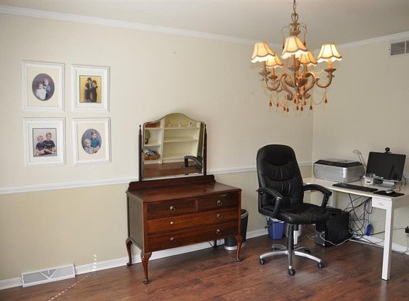 This 4 bedroom, 2.5 bath home offers space for everyone. It has a main level master suite with a large walk in closet, raised vanity and a whirlpool tub in the master bath. The glass front door welcomes you into a tiled entry and a sunken living room. The living room is open to the 2nd floor with tall ceilings, hardwood stairs and beautiful wrought iron accents. Added features include additional living space on main level with a multi-function sunroom, fireplace and brick patio. New roof in 2013, new gas range and microwave installed 7/15. This home offers tons of living, office, entertaining and storage space.