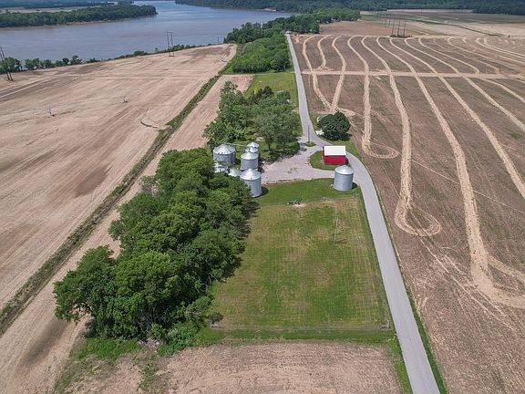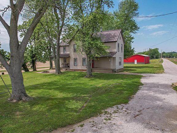 Welcome to this charming farmhouse nestled in the serene southwest corner of Evansville on 5 acres, with a spectacular Ohio River view! Meticulously renovated, this home boasts exquisite craftsman-style woodwork and trim throughout, creating an atmosphere of timeless elegance. Step inside to discover over 2600 square feet of luxurious living space, adorned with 9-foot ceilings and thoughtful details at every turn. As you enter through the inviting front porch, you're greeted by a spacious dining room, perfect for hosting gatherings. Adjacent, the living room offers abundant natural light and a cozy wood-burning fireplace, accented by a natural stone surround. Retreat to the primary bedroom suite, conveniently located off the dining room, offering dual closets and a lavish en-suite bathroom featuring a twin sink vanity, stand-up shower, and a luxurious jetted soaking tub. The heart of the home lies in the oversized kitchen. Adorned with new stainless steel appliances, granite countertops, and a charming butcher block island with bar seating. A convenient main floor half bath, cellar stairs, and maintenance closet complete the main level. Upstairs, you'll find three additional bedrooms, each with recessed lighting, ceiling fans, ample closet space, and plush new carpeting. These bedrooms share a spacious full bathroom, complete with a twin sink vanity and a water closet featuring a tiled walk-in shower. Access to the attic is conveniently located above the landing. Outside, the property unfolds across 5 acres of picturesque landscape, offering breathtaking river views from every vantage point. Three large pole barns provide ample storage space, with the largest barn on the west side featuring horse stalls and an attached electric fence. Additionally, eight silos stand ready to accommodate excess harvest, currently leased by local farmers.
