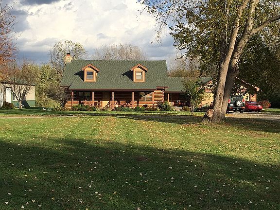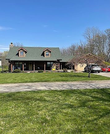 Log home built in 1986. 4 bedroom, 3 bath. 2 car attached garage. 40x60 pole barn. Walk out basement. Back portion of basement unfinished(could be another bedroom or living room). 6 acres with creek on the property of which 2 acres is wooded. We have purchased 1200 square feet of new flooring (vinyl plank) that we plan to lay on the main floor.