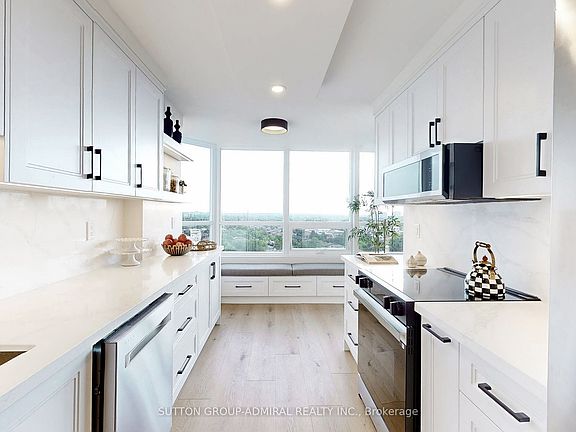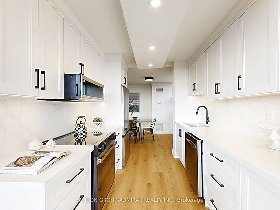 NEVER LIVED IN & FULLY RENOVATED W/Top Of The Line Designer Finishes Corner Unit Allowing In An Immense Amount of Natural Sunlight Located In Prime Thornhill With CN Tower Views, Storage Locker & Brand New Windows. Walking Distance To Parks, Promenade Mall, Transit, Grocery Stores & Endless Amenities. High End Features Include: Extra Wide Plank Wood Color Flooring Throughout, Modern Kitchen With Built-In Bench & Extra Storage On The Bottom, Quartz Counter Tops & Backsplash, Pot Lights, Smooth Ceiling's Everywhere, Stunning Mouldings & Extensive Premium Carpentry Work. Exotic 24 x 48 Inch Porcelain Floors & Walls In Washrooms, Custom Built-In & Walk-In Closets, Rich Black Hardware T-Out. Top Quality Renovation With ESA Certificate (Electrical Safety Authority). Ultra Low Maintenance Fees Includes ALL Utilities, Even Cable & Internet. Exceptional Well Maintained Extremely Quiet Building. Won't Last Long!