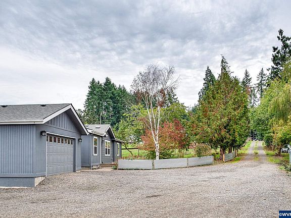 Adorable home on 2.19 acres located on your own private gated lane. Perfect for your critters--exterior fenced. Enjoy pastoral views and evening sunsets from the kitchen, dining area, covered patio and outside fire pit. Large master on one end, two bedrooms on the other. The 40X48 barn/shop has plenty of room for your hobbies or critters. Two unfininished offices in the barn ready for your home business. Heated finished hobby room in the back of the garage. Easy access to Hwy 22, I-5, and Salem.