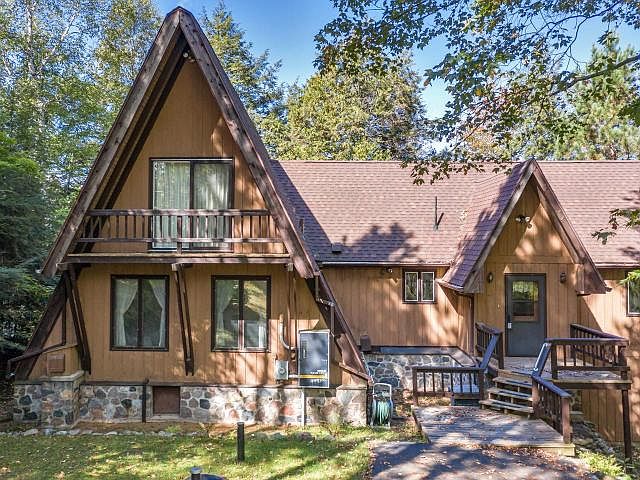 A beautiful drive brings you all the way to the end of the road & right into this lovely Armour Lake property! 378 ft sand ftg w/1.43 wooded acres is the setting! 1981 sq ft home has 3 BR's & 3 full baths. Original cabin was an A-Frame w/beautiful contrasting wood. LR has wood burning stone FP & beautifulf lakeside windows. An addition was put on that includs large eat-in K w/great cabinet space & breakfast dining area w/patio doors that lead out to the lakeside deck. Off the K is the formal DR. There is also a BR & full bath on the main level. Upper level has open loft & 2nd BR. LL has FR w/2nd stone wood burning FP, MBR suite w/private bath & whirlpool tub plus 2nd bath with steam shower & utility room. From the house is a gentle slope down to the level lakefront & gorgeous waters of crystal clear Armour Lake. Exterior includes 3 car detached garage w/heated workshop plus 24X10 240 sq ft shed! Armour Lake is 328 acres w/depths up to 56 feet & known for fabulous water recreation!