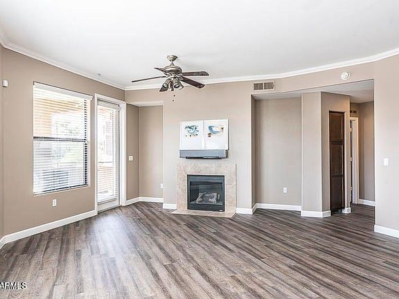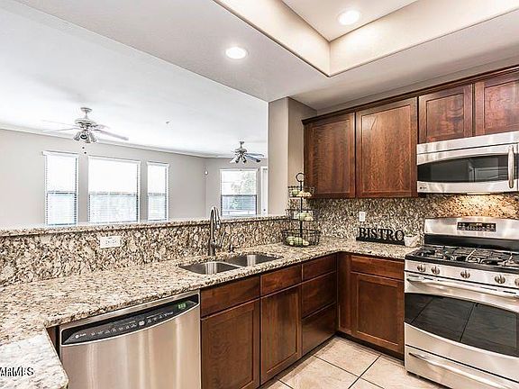 The sought-after Corriente luxury gated community, is in a prime area of Scottsdale. This beautiful corner-unit offers an open great room, gas fireplace, split master bedroom retreat with ensuite, dual vanities, tiled shower, & walk-in closet. The kitchen features granite countertops & backsplash, GE Profile stainless appliances, gas range, & breakfast bar. Other features include inside laundry room with cabinets, crown molding in the great room, granite countertops in both baths. The community features a heated pool and spa, fitness center & media room. This unit comes with underground garage parking for 2 cars close to the elevators, fast Wi-Fi Internet, and cable TV are included. Close to shopping, dining, golf, the new Ritz Carlton Residences, The Palmeraie, & access to McCormick Ranch greenbelt. Owner pays for HOA, water, garbage collection, internet service, and cable TV. No smoking allowed.
