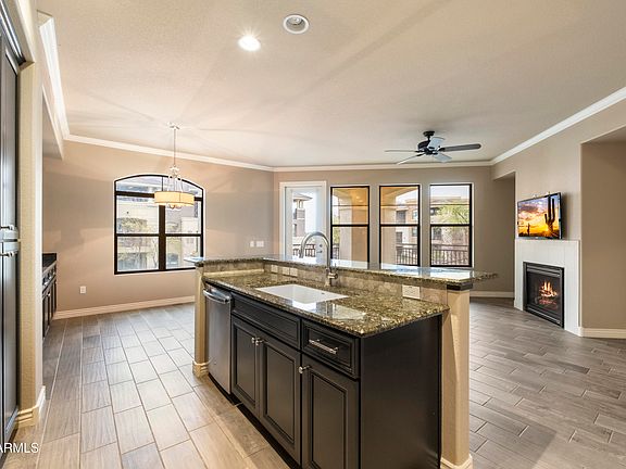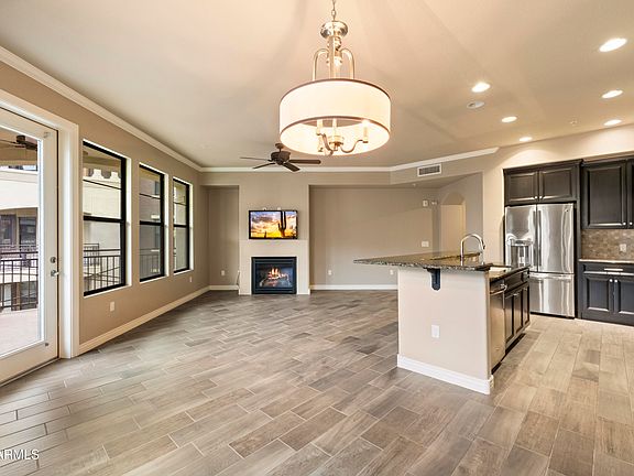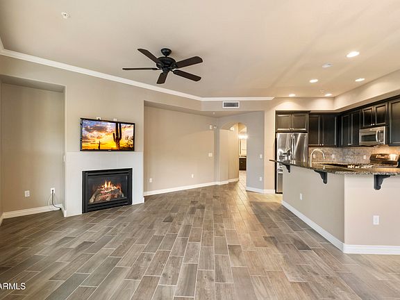fireplace in the living room compliments the comfortable space. The primary closet features a custom closet suite. Full sized LG washer and dryer included. Owner added tankless water heater for efficiency and more storage area. Outdoor patio off the main living room. Underground parking space close to elevator and stairwell. The unit is in-close proximity to the community pool, clubhouse and fitness center. This community is located near the new Ritz Carlton, world class. excellent dining choices, 25 minutes t Phoenix Sky Harbor Int'l Airport, first class resorts and golf courses all nearby.