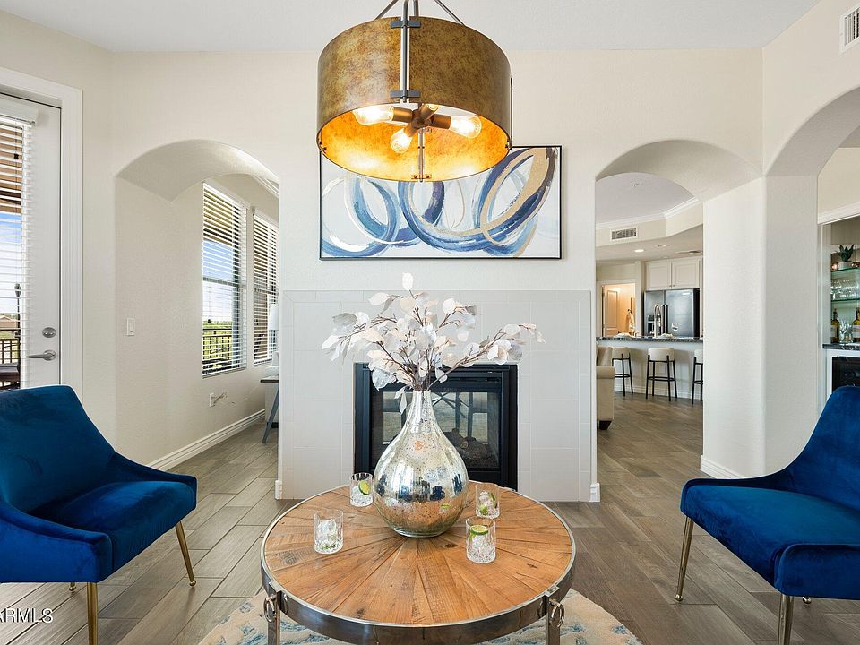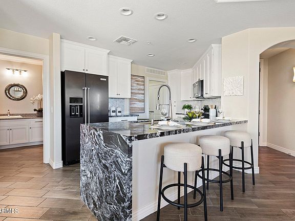 Immaculately remodeled condo located in the highly desirable Corriente community. This stunning residence showcases Waterfall Quartz Kitchen countertops, exquisite flooring, and tasteful window treatments, creating an ambiance of elegance. Natural light fills every corner of the space, adding to its allure. The condo boasts breathtaking mountain views, a serene water feature, and a picturesque golf course, all visible from the expansive patio. With 2 underground parking spaces, this turn-key property is ready for immediate occupancy. The gated community offers additional amenities such as a Fitness Center and Clubhouse, providing an enhanced lifestyle. Enjoy maintenance-free living in an unbeatable location, just minutes away from a variety of shops and restaurants.
