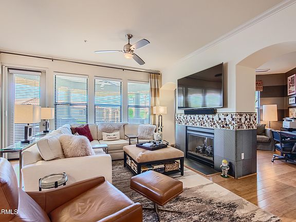 Voted #1 at The September Heart of Scottsdale Home Tour! Updated,corner, two bedroom, two bath, large condo is just what you have been looking for. Located in the desireable gated community of Corriente, this condominium boasts views of Camelback mountain and AZ sunsets. Corriente backs to the Silverado Golf Course and Clubhouse. Enjoy being on the Scottsdale bike path and walking trails, and being part of the heart of Scottsdale activities. Close to restaurants, shopping, golf, gambling, hotels, baseball, and the 101 freeway. Enjoy the Resort style pool, spa, exercise room. and party room. Three story buildings have elevators to underground parking. Great Room, Study, two sided fireplace, beautiful primary Bedroom suite, open kitchen, granite, stainless gas appliances. Luxurious