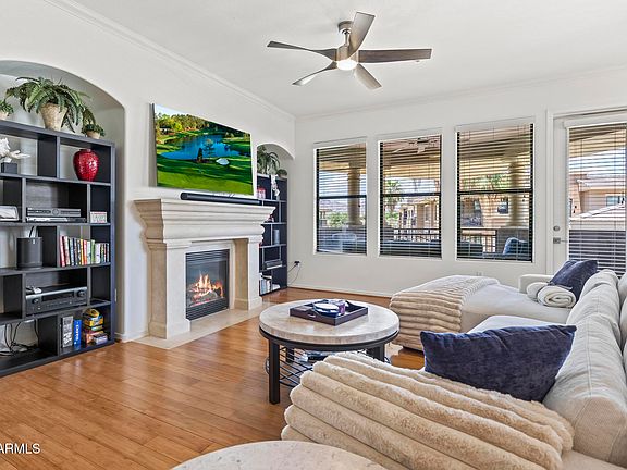 Welcome to this beautifully upgraded 3 bed, 2 bath condo—one of the few full-sized units available in the highly sought-after, gated Corriente community in Scottsdale! Enjoy scenic mountain and pool views from your private balcony. Interior features include freshly painted walls, rich bamboo flooring, upscale cabinetry, granite countertops, a gas cook top, and a cozy gas fireplace. The spacious owner's suite offers breathtaking views, a walk-in closet, and a luxurious bath. Separate laundry room with full-size washer/dryer, and TWO underground parking spaces located conveniently by the elevator. Just steps to the resort-style rec center, fitness facility, golf, walking paths, and parks.