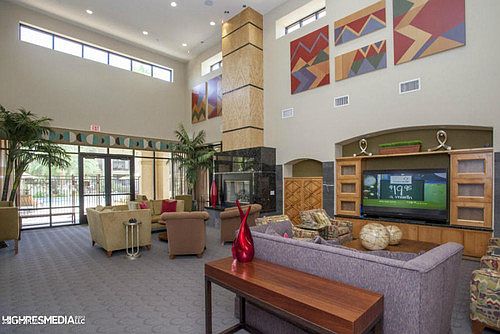 39; flat screen TV above fireplace is a bonus! This unit has a great floor plan and master bedroom split! Community amenities include a luxurious heated pool & spa, fitness room and clubhouse media room.