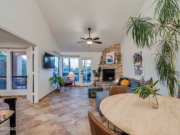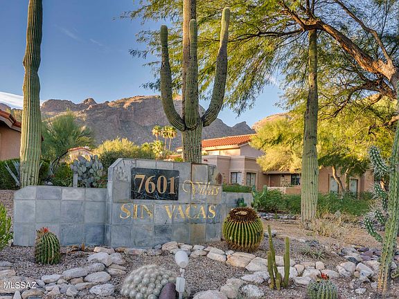 Stunning Villa perched high in the Catalina Foothills...Welcome to Sin Vacas - the exclusive, 24/7 guard gated community surrounded by mountains, views and multi-million-dollar estates. This immaculately remodeled two-bedroom Villa is an entertainer's dream, featuring a bright, airy, vaulted ceiling great room that spills out onto the large back patio overlooking the sparkling, year-round heated pool and spa and City of Tucson in the distance.You will not be able to take your eyes off the wood-burning stacked stone fireplace along with the large windows with ideal north/south exposure. The kitchen is luxurious and finished with hi-end appliances and cabinetry, granite countertops and slate backsplash.Community also features Fitness Center, Clubhouse, Library and Walking Trails.