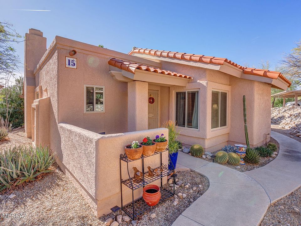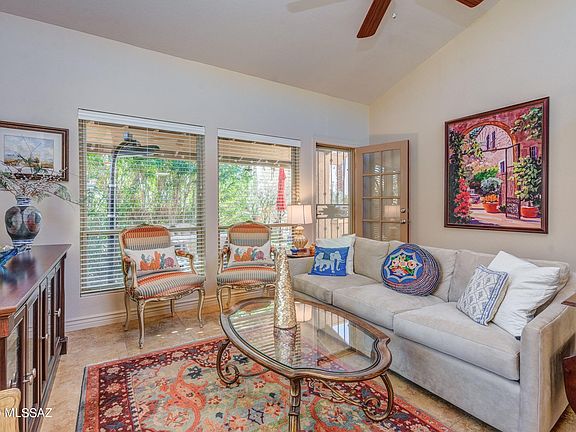 Rare 2 bed/2 bath corner unit, located near the pool/fitness center in gated Sin Vacas. Completely updated, with 2017 HVAC, hot water heater, newly painted, new walk-in showers, energy efficient windows, blinds, custom cabinets, ceramic tile floors, built-in bookcase in master. Private patio, perfect to enjoy Tucson's outdoor lifestyle. Owners live in the home less than 5 months of the year. Amazing home, come and see!
