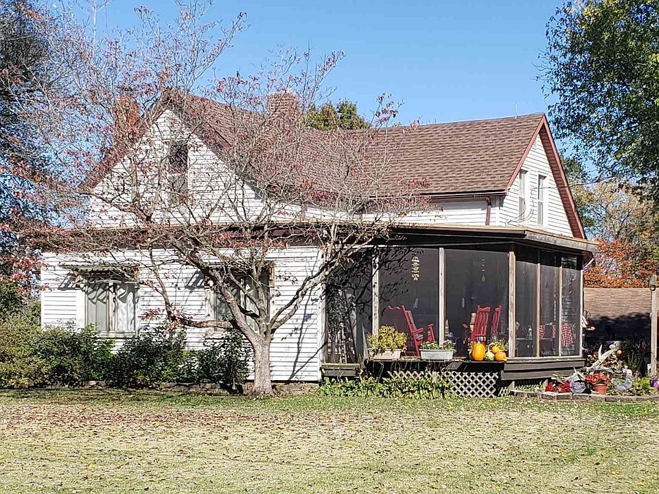 1911 Farm House on 4.9 acres with a pond and 3 outbuildings. Around the year wild life sightings. The pond is perfect for impatient youngsters learning to fish or to cool off in the summer! New LVT and carpet in most of the house. Enjoy Holiday celebrations in the big eat in kitchen with stainless steel appliances. The oversized living room would host family game night or relaxing evening. One main floor bedroom and two more upstairs. Playroom / t.v. room and full bath upstairs as well. The upper bath's sink stand is made from reclaimed wood from a barn Featured in A LEAGUE OF THEIR OWN! The downstairs bathroom was completely remodeled in the last few years. Main floor laundry is tucked into a closet in the office (or dining room). Screened in front porch is the perfect spot for coffee and a good book! There is a workshop and 2 stall garage with no garage doors. A very old barn has the capacity for lawn mowers and additional storage! The back barn housed chickens for more than 15 years and still has the coop ready for a new flock! Down the hill you will find an open area great for a large bonfire and a convenient spot for target practice. Lots of Wonderful memories just waiting to be made for your family! This property is owned by a licensed realtor.