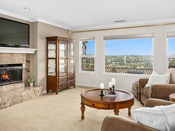 1 LEVEL WITH SPECTACULAR VIEWS! Welcome to your dream home, perched high on a hill overlooking the Omni La Costa Resort & Spa golf course, picturesque hills, and enchanting city lights. This custom-built 1-level residence, located in one of La Costa's most sought-after neighborhoods, sits on a tranquil, low-traffic street. This turn-key property boasts excellent privacy and a generously sized lot. As you step outside, you'll be captivated by the sprawling backyard patio, complete with a built-in barbecue – a perfect setting for embracing the stunning views and enjoying indoor/outdoor coastal living. Inside, the heart of the home is a beautifully appointed kitchen with granite countertops, a convenient kitchen island with a cook-top and built-in wine rack, a dedicated desk space, double ovens, and a skylight that bathes the space in natural light. The large primary suite is nothing short of a sanctuary, offering picturesque views and a spacious bathroom with separate dual vanity, a walk-in shower, and a separate soaking tub. You'll also find a cedar-lined walk-in closet. Both guest bedrooms are generously sized, and one of them features a built-in desk/wall unit, making it versatile for various needs. Other notable features of this home include central air conditioning, a cozy double-sided fireplace, hardwood flooring, crown molding, and plantation shutters throughout. For those who love to tinker or need extra workspace, the oversized 2-car garage features epoxy flooring, additional office/craft room space, built-in storage, and a large workroom with a bench. The location couldn't be more ideal – with shopping, restaurants, parks, and schools in close proximity. Plus, you're less than 4 miles from the beach and just a few blocks from the award-winning La Costa Heights Elementary. This home offers the quintessential Southern California lifestyle and is sure to be a haven for anyone seeking a blend of luxury, comfort, and breathtaking views.