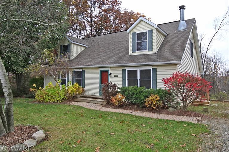 REALTOR: Mark Stafford 269-968-6101 *598 or mark@stafford-team.com//This home is surprisingly big and updated with fresh paint and floorcoverings. Living room with fireplace, sharp kitchen with snack bar and dining area with slider to a deck overlooking a scenic wetland. Main floor laundry. 2 bedrooms on the main floor and a full bathroom. Two very large bedrooms upstairs - each with its own bathroom and a bench seat for reading near the window. Full basement with walkout. 2 x 6 construction, vinyl windows. 5 inch well. Energy efficient furnace. Includes: water softener, range, dishwasher, washer and dryer. Taxes are non-homesteaded, therefore buyer may get them reduced. Super sharp home that will leave you surprised at its value.