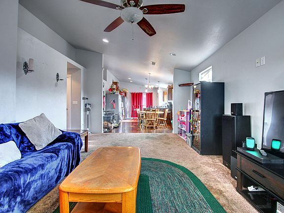 Excellent neighborhood! Newer house with large fenced back yard perfect first-time home or investor. Wonderful open floorplan boasting vaulted ceilings, granite countertops, laminate floors, custom cabinets, upgraded lighting features including under cabinet, plant shelf, can lighting, and pendant lighting, plug-ins strategically placed for Christmas lighting and other outdoor lighting, and a gas hookup on the back patio for BBQ, and a large covered back porch. The kitchen is large and offers tons of cabinets for storage, breakfast bar, stainless steel oven & dishwasher and convenient pantry. Master suite has large walk-in closet, coffered ceilings and walk in shower. Front and back yards have covered patios, are fully landscaped with timed sprinklers, backyard fully fenced for pets, children, and privacy. Minutes to medford and close to school and parks. Bring your clients, they will love it!