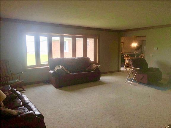 Country living with maintenance free, all brick ranch home on a full basement. Property includes 40 acres of productive tillable, cash rented, tiled land, 2 acres of fenced pasture and small woodland. The house is extremely well built, has three baths, one with whirlpool tub, large kitchen with Hickory cabinets and dining area, huge living room with a wood burning fireplace, central vacuum, solid oak six panel doors and trim. The bedrooms have large double closets with a walk in closet in the master bedroom. The study off the MBR that could be used as an office or a lovely sitting room. Utility Room with laundry sink and third bath are completely tiled for easy cleaning. The oversized garage has a floor drain, hot and cold water.Poured wall full basement has a separate flue for a woodburner and a separate entrance into the garage for easy access. The tillable land is systematically tiled and cash rents for $180/acre.