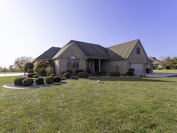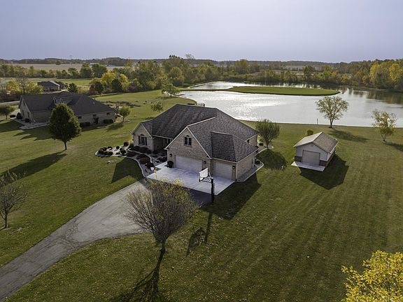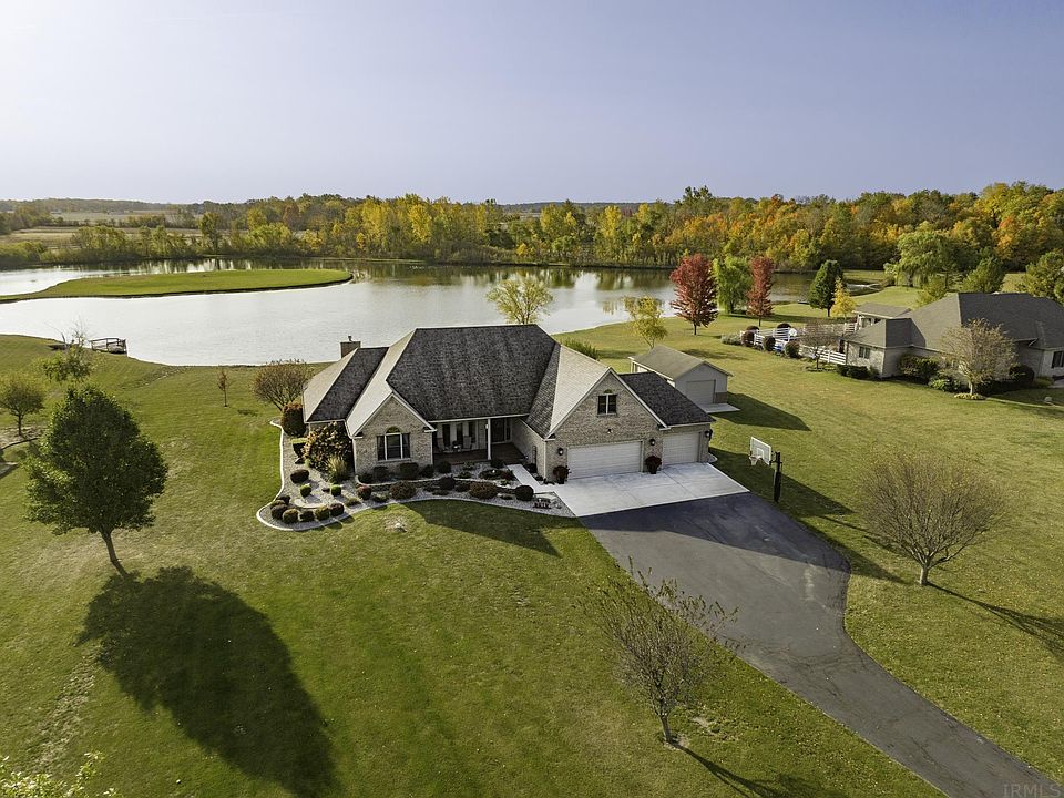 Beautiful 4 bedroom home on the water! Impressive set back from the road, and recently updated concrete and composite front deck to enjoy rural views. Large foyer entry with high ceilings, and adjacent formal dining room with cathedral double tray ceiling, and casement bay windows. Kitchen has custom granite countertops, new backsplash, and LG black stainless appliance suite, all replaced within the last 4 years. Large pantry closet. Hardwood from the entry is continuous throughout much of the living space. Every main level window on the south side of the home has views of the water, including the breakfast room, living and family rooms, primary suite. Family room fireplace has redesigned hearth and mantle, with plenty of character. Oversized 3 car garage, plus outbuilding with overhead door, and 8 foot covered concrete patio facing the water. Large upstairs bedroom could function as additional gathering space or office, and attached closet is plumbed for bath if desired. Huge back deck for entertaining or repose.