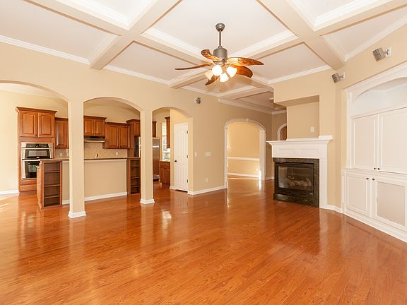 Beautiful Ranch in Harrington Pointe! Newly Refinished Hardwood Floors, New Sod & Dogwoods planted. Kitchen w/Stainless Appliances, Granite, Bar Seating, Breakfast Area, Separate Dining Room has a Trey Ceiling. Family Room w/Coffered Ceiling & gas Fireplace. Master has California Custom Closets, a Fireplace, Jetted Tub, Walk-in Shower. Split Plan with Nice Size Bedrooms. Screened Porch. Paver Patio. Fenced Backyard. Low-maintenance living as HOA handles landscaping. Community Clubhouse & Pool!