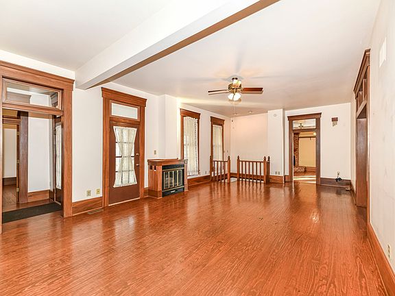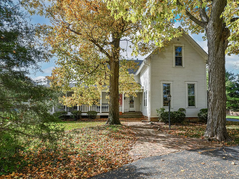Your own private park-like retreat with over 2.5 acres! New Roof 2021! This historic home has been lovingly cared for generations. Beautiful hardwood floors flow throughout the entire home and accent Original details like: Gorgeous wood trim+doors, Transom windows, gas fireplace and more. The Primary Bedroom is on the main floor and features a walk-in closet and en-suite with dual vanities. Cherry cabinets adorn the kitchen that opens to a Hearth Room with additional fireplace. There is so much space including a Den and mudroom with wet sink. Enjoy your favorite beverage from the porch swing or the screened-in porch. This property is one of a kind with mature trees and plenty of parking. The 2 car detached garage features a workshop and a second outbuilding for storage.