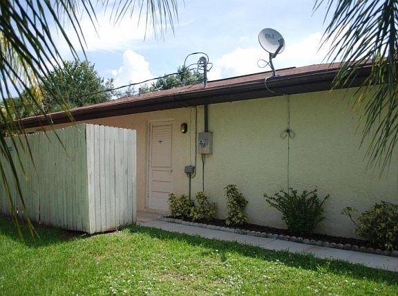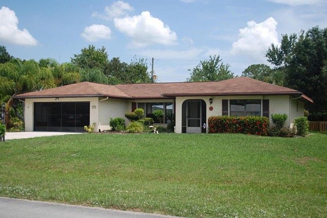 Immaculate 3/2/2 CBS split plan home in lovely Lakewood Park. Move-in ready. Impeccably maintained. Many upgrades; Rolladen Hurricane Shutters that open and close with a twist of the inside handle, top of the line Reverse Osmosis water treatment system, Sun Stopper window tint, Stainless Steel appliances, new carpet in living room, laminate in kitchen/dining area and guest bedrooms, Screened entry porch, Screened patio with kitchen pass-through for entertaining, ceiling fans throughout, Screen sliding doors on the garage to let the tropical breeze flow through, 2nd fridge in garage, washer/dryer included. Spacious, airy, bright in a wonderful quiet family neighborhood with community pool & many amenities. Close to fabulous beaches, shopping, dining, entertainment. Paradise found!