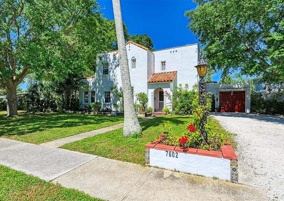 Every now and then a very special home comes along that is beautiful, unique and one of a kind, that is rich with personality and character. This is what you'll find in this nostalgic 1925 Spanish Mediterranean residence. The wonderful layout offers 3 bedrooms on the 2nd level with the main 1st floor fashioned for gatherings where you can meander from the comfortable family room, dining room, cozy living room and study to the kitchen. Exit the back of the home to the separate 1 bedroom, 1 bath turnkey furnished "CASITA" guest cottage with its own private entrance that will nicely accommodate guests or serve as an AirBnB. The backyard is absolutely enchanting with exotic tropical trees that include a Madagascar Palm, Rainbow Eucalyptus, Brazilian Cherry, Haas Avocado, Banyan, Bombax Ceiba and a myriad of palms trees. Wander through this beautiful botanical setting and you'll see jasmine, buddha belly, crinum lilies, gardenia's, orchids, mother of thousands and more on a nicely sized 1/3 acre offering plenty of room to add your swimming pool. Saltillo tile floors, arched entrance ways, stained glass accent interior windows, clay tile barrel roof, a wood burning fireplace, coffered wood beam ceilings, French doors, custom wrought iron archway and gates are just some of the many amenities you will discover. Features include a remodeled kitchen with propane gas, remodeled guest bathroom, 2nd story balcony off the Master Suite with amazing views, 2021 GREE 3 mini-split system with a main unit, freshly painted home exterior, on demand 2013 tankless hot water heater, fenced backyard, gazebo, greenhouse, well & irrigation system, outdoor shower and workshop with the option to convert back to a one car garage. Enjoy the benefits that Palma Sola Park offers with the Yacht basin and park that also offers a fishing pier. For a small fee you can apply for membership to the community's boat club and sign up for a boat slip. Non-deed restricted and not in a flood zone. Be sure to check out the 3D Tour link!